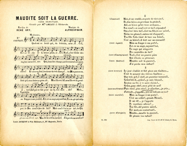 Maudite Soit La Guerre Scene Dramatique Chantee Par Mademoiselle Amiati Partition Paroles Et Musique De Rene Gry 18 1907 Alfred D Hack 1828 1892 Titre De 1871 Chansons Populaires Et Edition Musicale