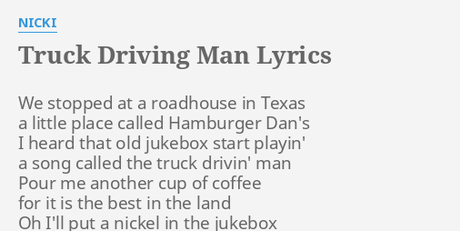 Truck Driving Man Lyrics By Nicki We Stopped At A